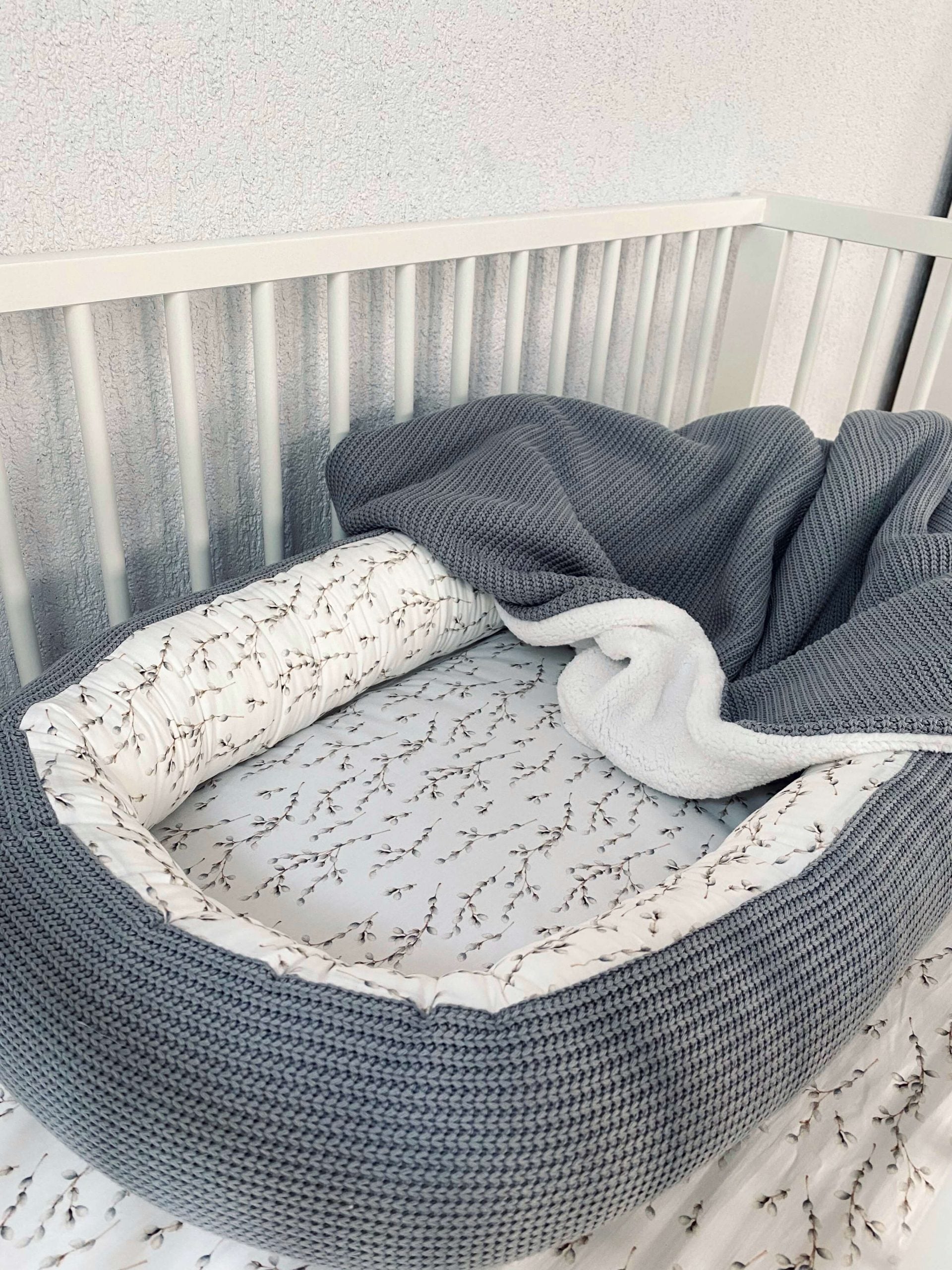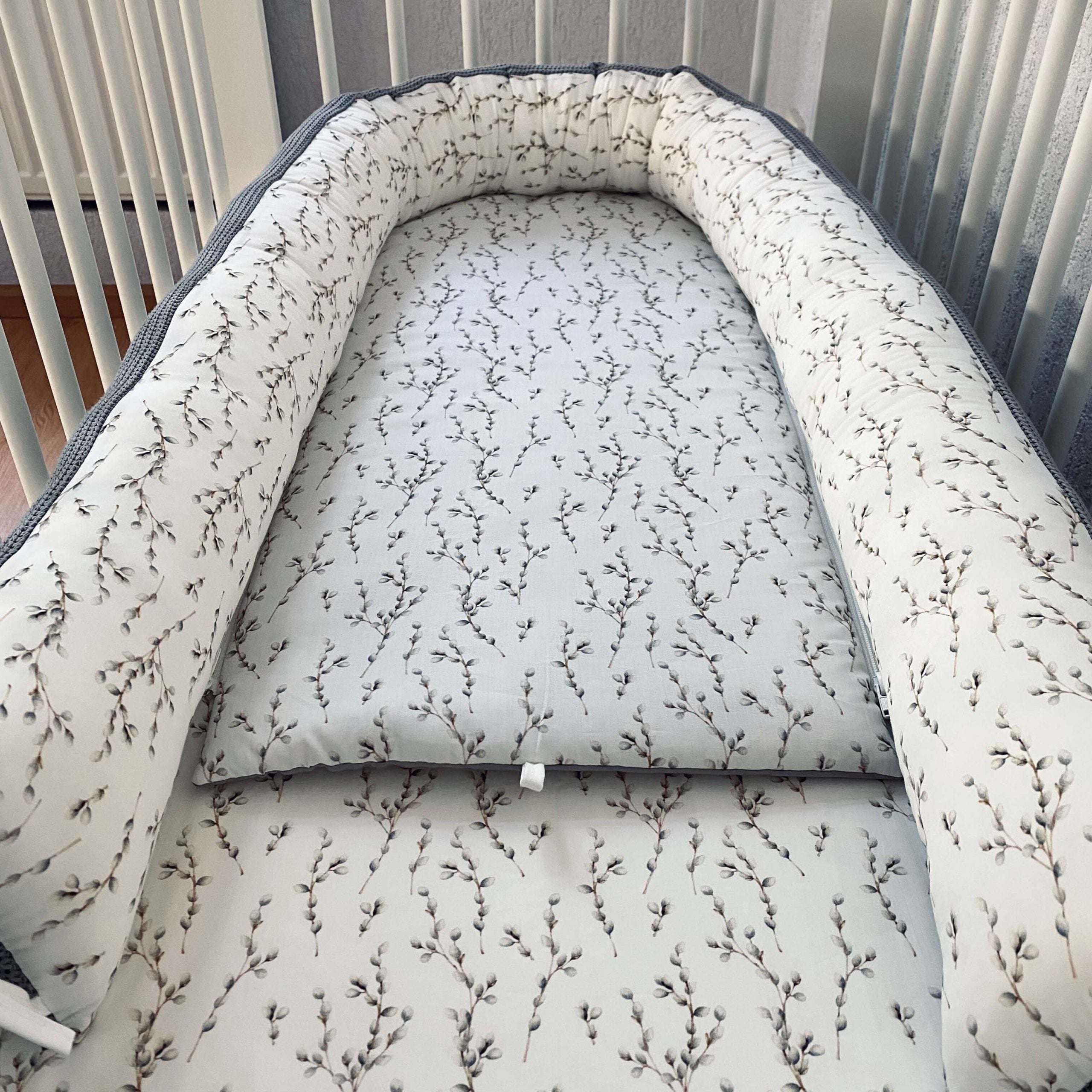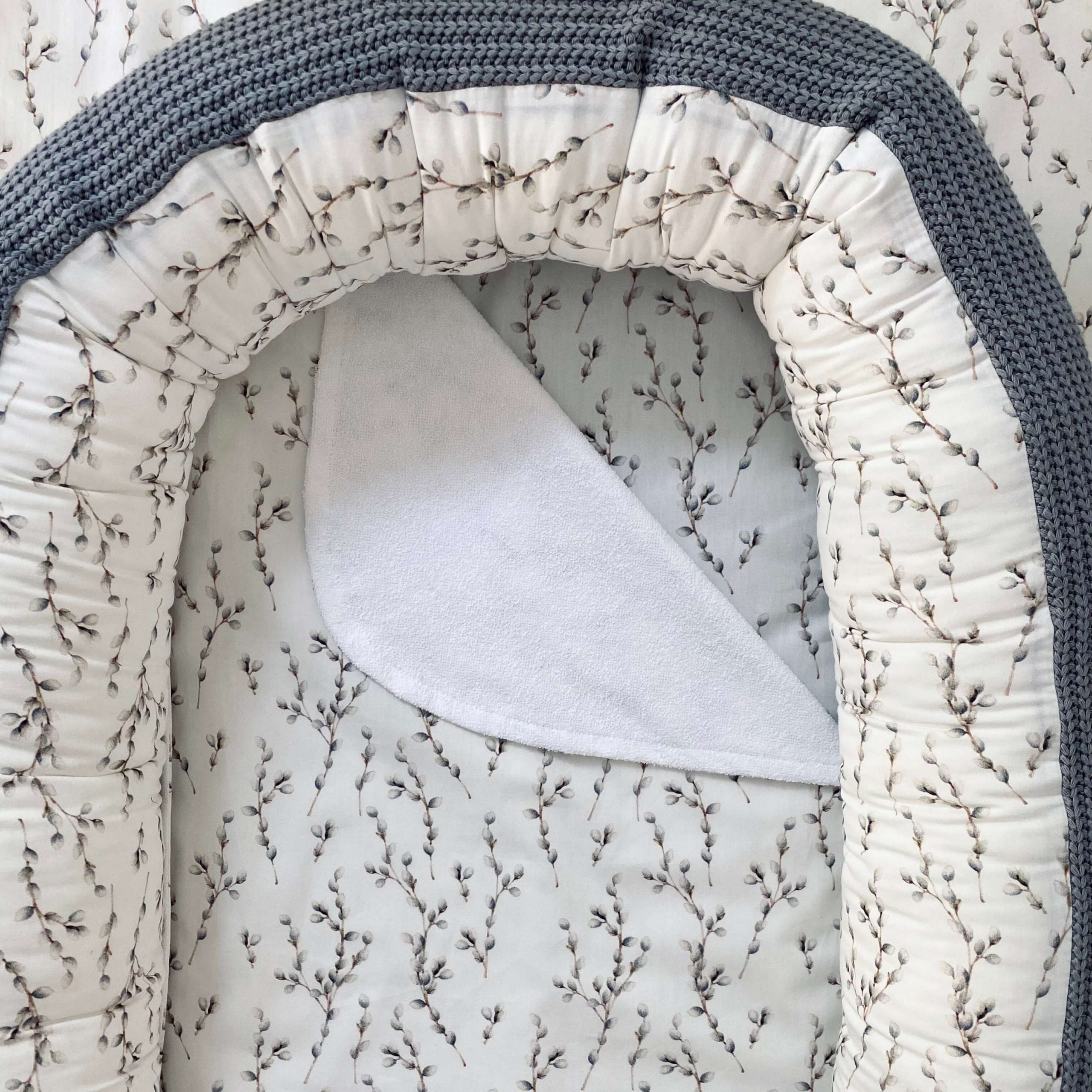 Mūsu ligzdiņā tiek izmantota unikāla materiālu kombinācija – biezs adījums un maigs kokvilnas poplins skaistai tekstūrai un maigs kokvilnas poplins. Ligzdiņa ir paredzēta augšanai kopā ar jūsu bērnu. Ja tā kļūs pārāk maza, vienkārši atveriet auklas ligzdiņas apakšā, un jūsu mazuļa kājām būs vairāk vietas. Kad nolemsi mazuli radināt pie savas gultiņas, ar rāvējslēdzēju viegli noņem ligzdiņas sānu malas un izmanto tos kā bērnu gultiņas apmalītes. Mēs esam pārliecināti, ka tādejādi pāreja no ligziņas uz bērnu gultiņu notiks vieglāk.