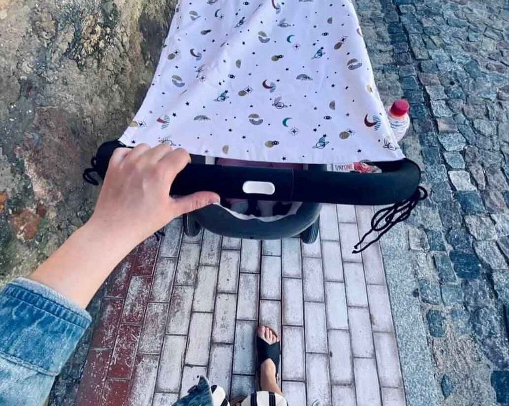 An absolute must-have for beautiful walks with baby and toddler – a handmade awning for the pram or the buggy.